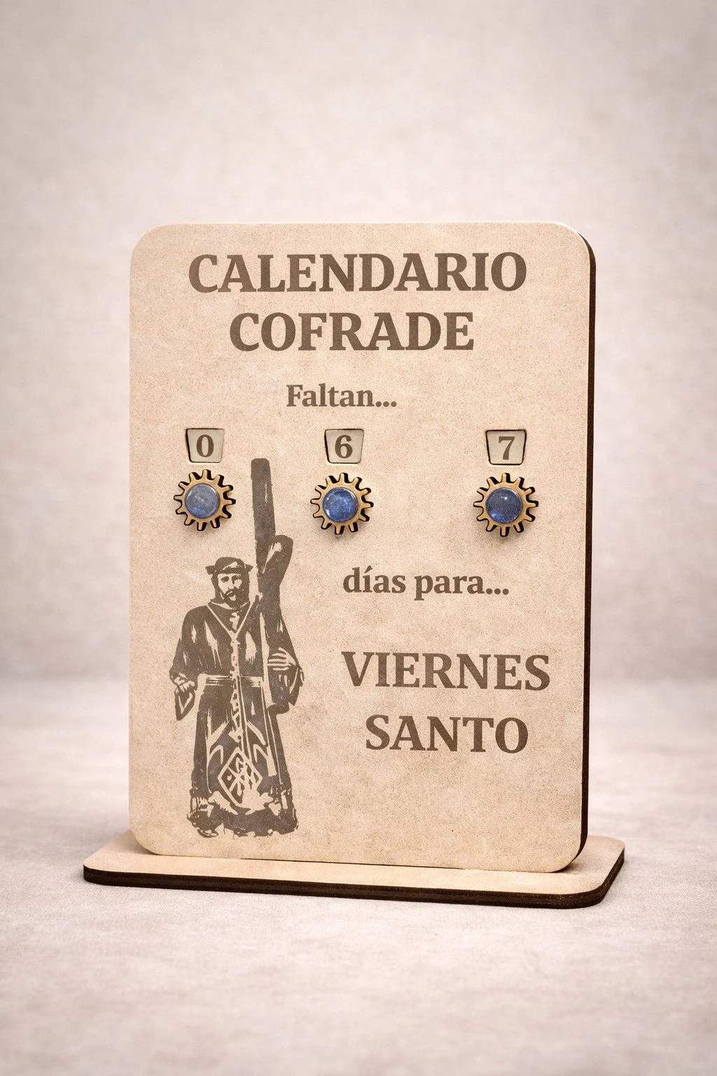 Calendario cofrade realizado en madera DM. Para que lleves la cuenta de lo que falta para la semana más bonita del año